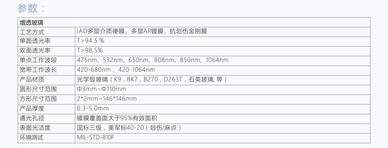 為了保護(hù)鏡頭免受風(fēng)吹雨打等環(huán)境影響,雙面增透玻璃是最佳的選擇,激埃特公司生產(chǎn)的BBAR增透玻璃具有大尺寸優(yōu)勢(shì),根據(jù)客戶喜好設(shè)計(jì)出抗劃傷且反光有質(zhì)感的墨綠色,經(jīng)典藍(lán)色,淡紅色等增透玻璃,結(jié)合激光波長和傳感器應(yīng)用波段,可單波長增透也可寬波段增透,380nm-1100nm近乎完美的全光譜增透是給光學(xué)儀器保護(hù)面板,安防日夜監(jiān)控?cái)z像機(jī)提供低損耗高清的視覺效果。防摔、防震、防指紋、防霧、防眩光、經(jīng)球?qū)嶒?yàn)后水滴小110度,具有超滑、超硬、超透光功能是激埃特BBAR增透玻璃最基本的功能。